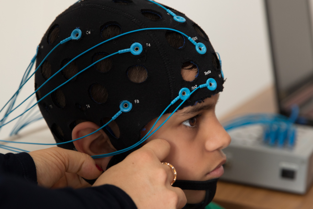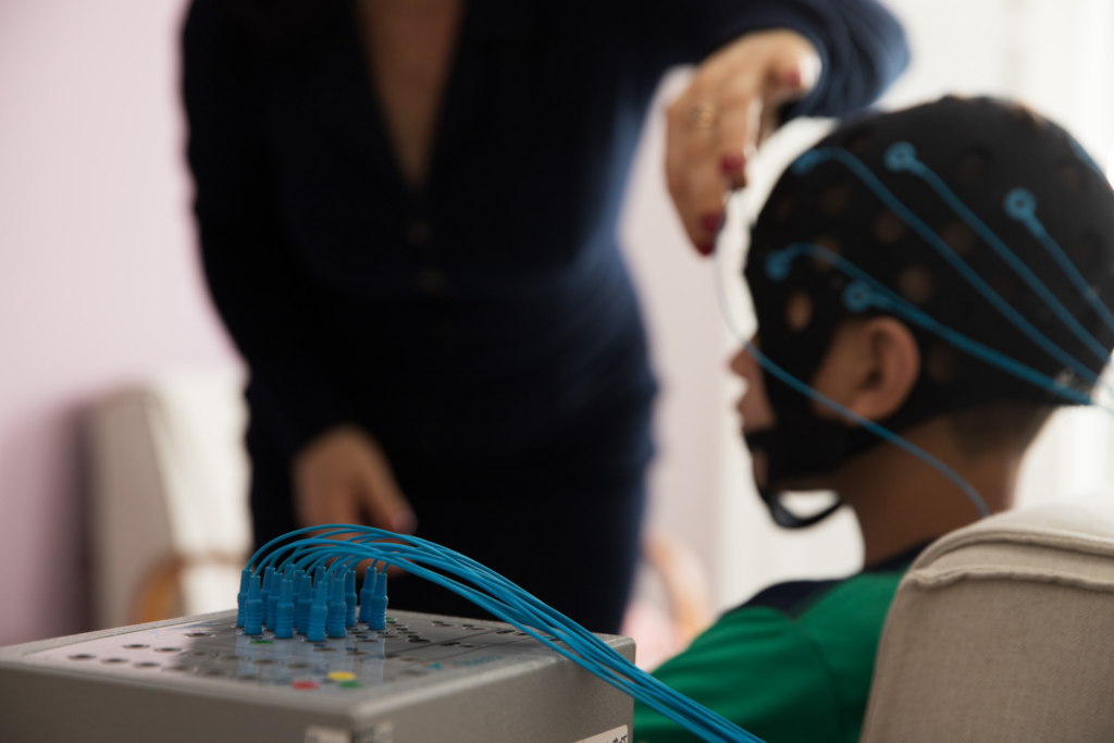 O neurofeedback começa com um mapeamento cerebral usando eletrodos para medir a atividade cerebral.